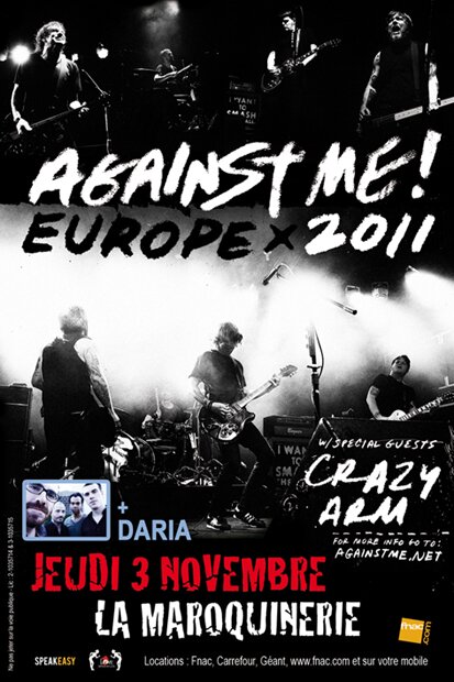Bonjour tout le monde, une brève pour vous informer. Les prises studio de cet été se sont très bien déroulées et les mixs des 11 titres mis dans la boîte sont en cours et tout se passe à merveille. On fera une news d'ici peu pour vous dévoiler le titre de ce 3ème album, son visuel et surtout sa date de sortie ! Autre news bien excitante niveau live, on ouvre pour AgainstMe! à Paris le 3 novembre (voyez le flyer à gauche). On est hyper content car on est tous fans de la bande à Gabel... On jouera aussi le 19 novembre avec les copains des Vilains Clowns à Echemiré (49) ! A très vite.